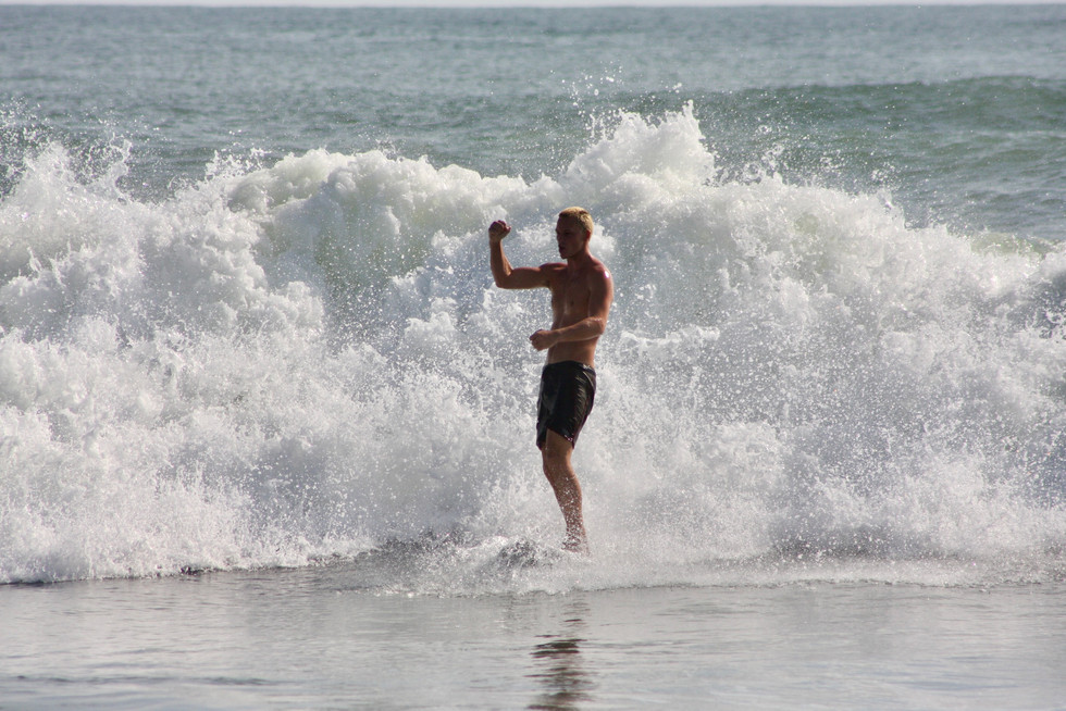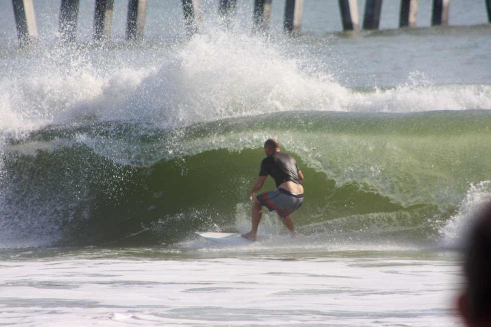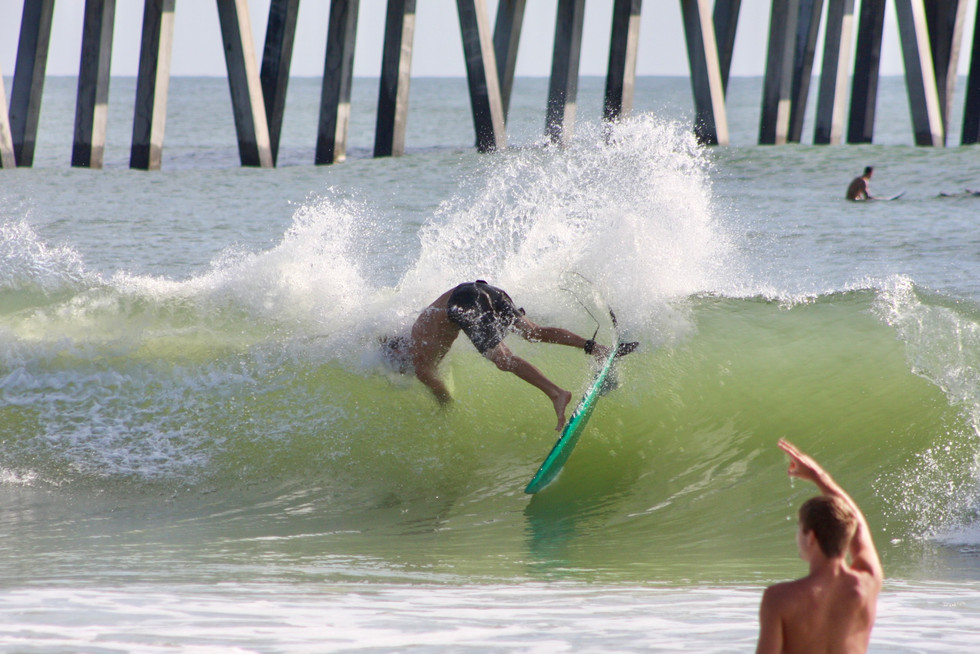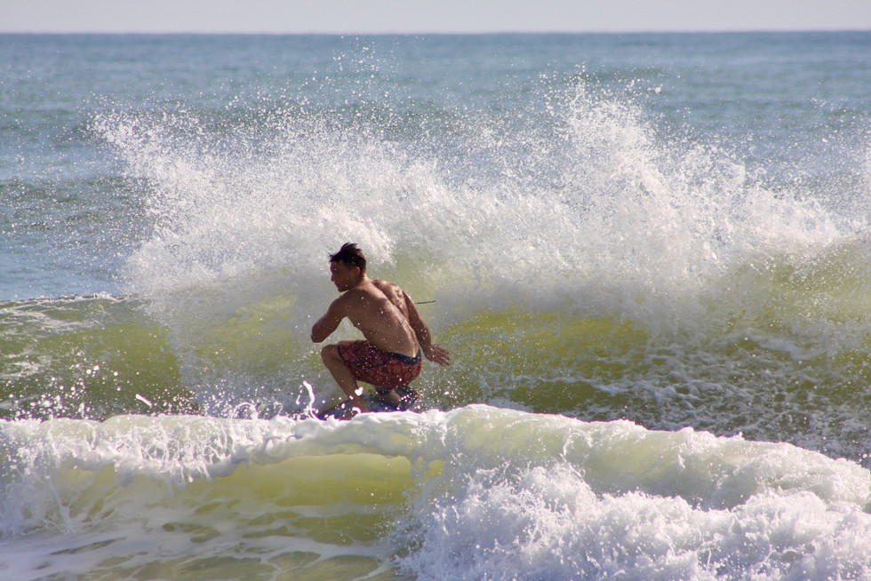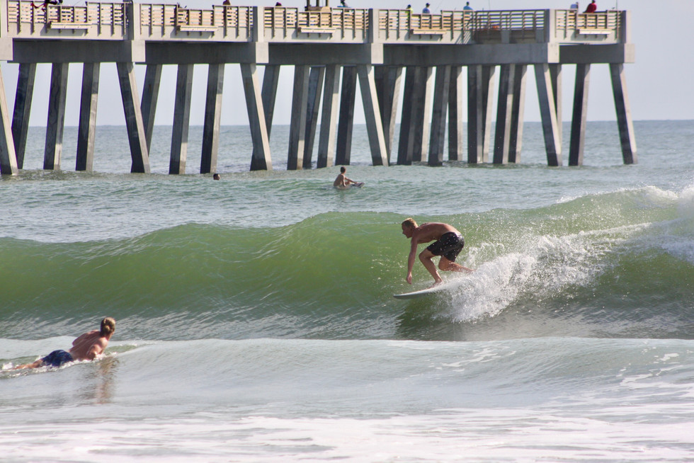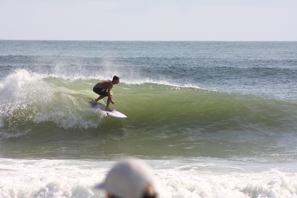 Fun surf right around the high tide this morning. Dumpy waist to head high... almost seems like a little more swell filled in. Clean and sunny for now, onshore and rain expected later this afternoon. GO SURF. GO JAGS!